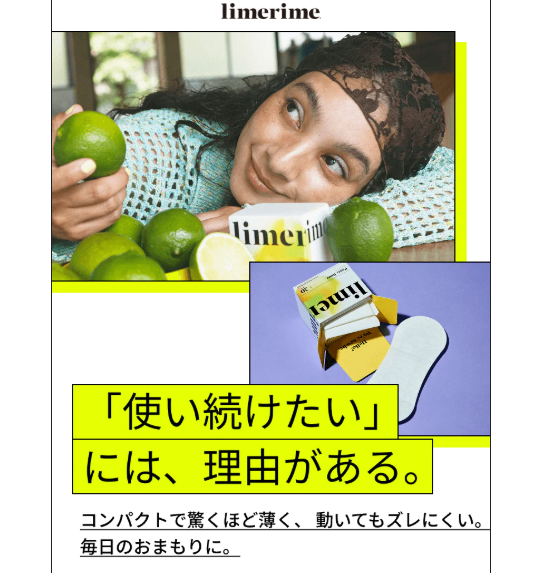 limerimeは、ただ生理用品の機能を満たすだけでなく、**生理期間を心地よく、ポジティブに過ごす**ためのサポートをしてくれます。自然由来素材の優しさ、高い機能性、そして環境への配慮。これらすべてを兼ね備えたlimerimeは、現代のサニタリー製品に求められる新しいスタンダードです。ぜひこの機会にlimerimeをお試しいただき、あなたのサニタリータイムに心地よい変化をもたらしてください。